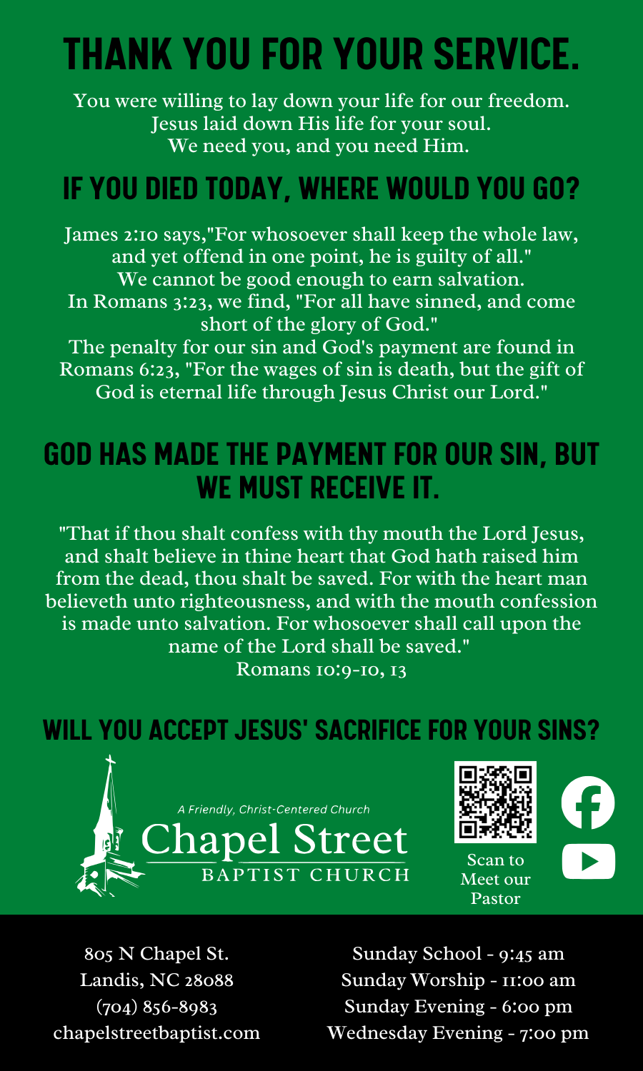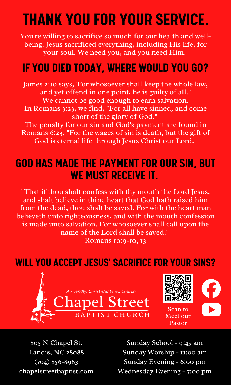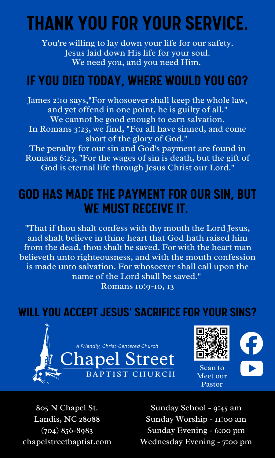 The Lord has allowed our church to design and produce a variety of evangelistic Gospel tracts and literature, and our heart is to share what God has given us with churches all across our country. Our tract designs are free to any like-minded, Bible-preaching, Baptist church, and can be customized with your logo and information. Just choose a design you would like, fill out the interest form, and a member of our staff will reach out to you. As long as there aren't any other churches in your region who have requested the same tract, we'll send you your personalized tract design with necessary printing instructions.